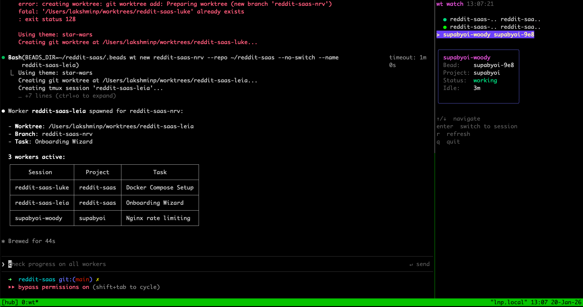 wt new proj-123 # Spawn a worker